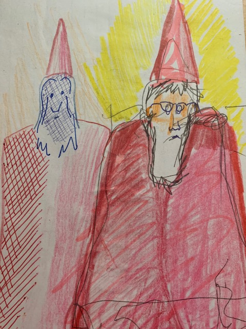 The ORB was glowing ever so slightly in shades of blue. As Poxig looked into the ORB, he saw a light that had never been there before. This might be a sacred space, such that the ORB could feel the magic power around him. As he looked around, aged men with long grey beards and red clothing approached from every side. They were wearing pointy red conical caps. They surrounded Poxig and Nesta, and at first it seemed like they were in trouble. But then, Poxig remembered that these were the stewards of light magic. No harm could come to them.